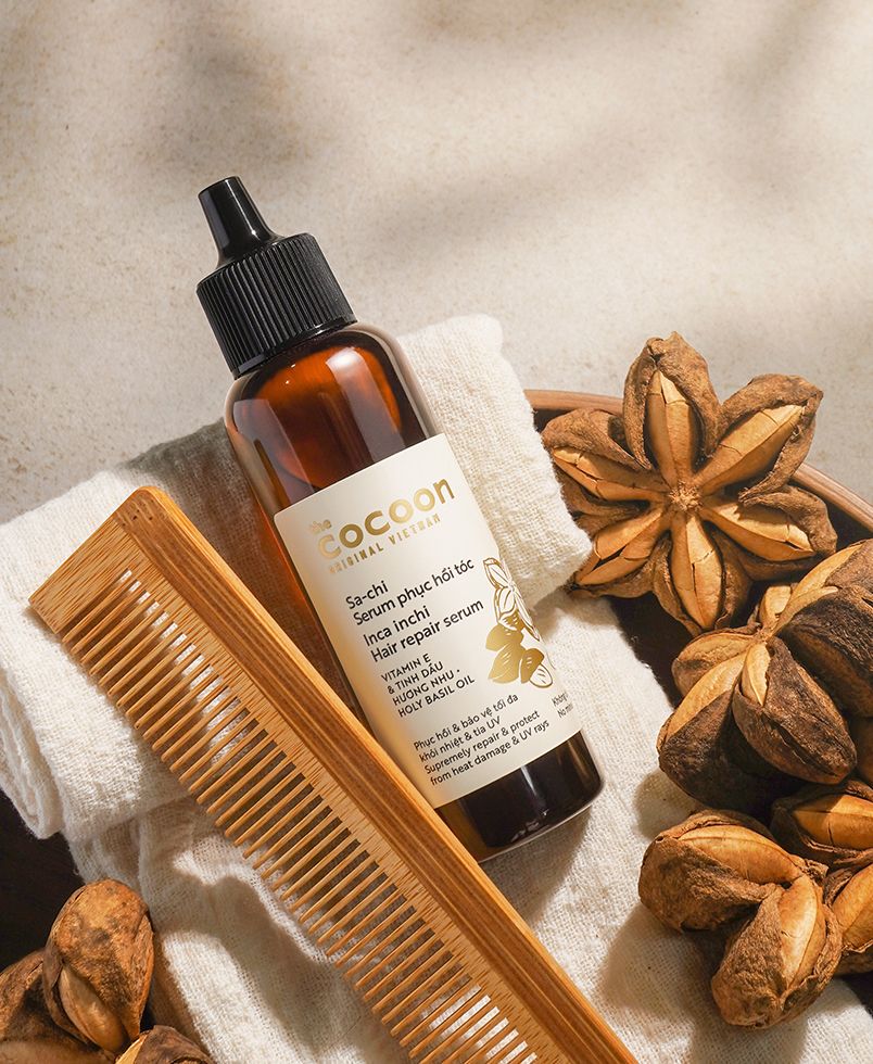 Inca Inchi seeds are not only delicious to eat but also contain a high amount of nutrients that help restore severely damaged hair. Inca Inchi oil is known for its unique composition, with up to 94% unsaturated fatty acids including Omega 3, 6, and 9. The Omega 3 content in Inca Inchi oil surpasses all other oils, being 49 times higher than olive oil, 40 times higher than argan oil, and 17 times higher than salmon oil. Therefore, Inca Inchi oil is very effective in moisturizing and nourishing the hair, especially for dry, brittle, and lacking vitality hair types.