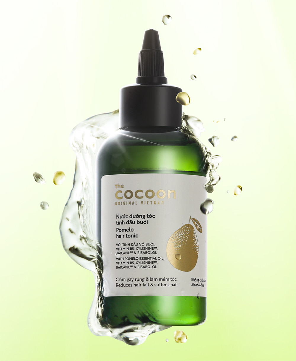 Pure pomelo essential oil, Vitamin B5 (Panthenol), Xylishine, Baicapil, Bisabolol.